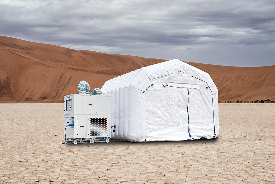 TEMPºSTORE™ is a one-hour deployable, temperature-controlled, inflatable building, incorporating a unique integrated floor and packaging solution. It enables rapid deployment in instances such as humanitarian aid where the cold storage of vaccines is critical. Its temporary nature also enables implementation when a solution is required quickly as it negates the need for planning permission.